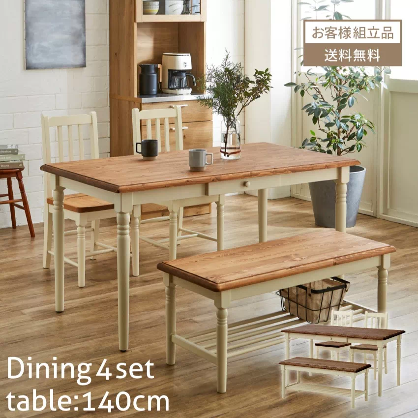 新生活 ダイニングセット 4人 ダイニングテーブルセット 4人掛け 北欧 おしゃれ おすすめ ダイニングテーブル 4点セット ダイニングセット ダイニング カントリー調 ベンチ おしゃれダイニング 食卓セット カフェ 天然木 パイン 140幅 カフェ風 大人かわいい