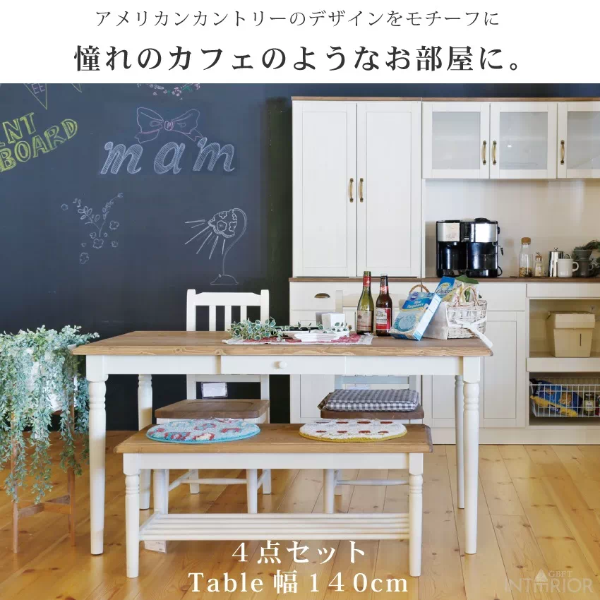 新生活 ダイニングセット 4人 ダイニングテーブルセット 4人掛け 北欧 おしゃれ おすすめ ダイニングテーブル 4点セット ダイニングセット ダイニング カントリー調 ベンチ おしゃれダイニング 食卓セット カフェ 天然木 パイン 140幅 カフェ風 大人かわいい GB-INTE-0426