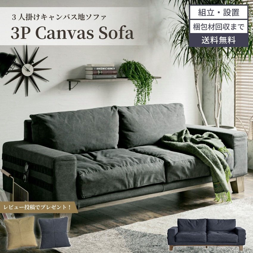ソファ おしゃれ 3人掛け グリーン キャメル キャンバス地 人気 おすすめ 新生活 三人掛け