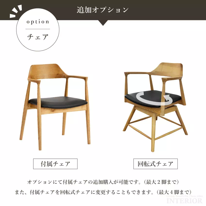 | テーブル:天板OAK無垢/脚ラバーウッド無垢(ウレタン塗装) チェア:アッシュ無垢/合皮(ウレタン塗装) |