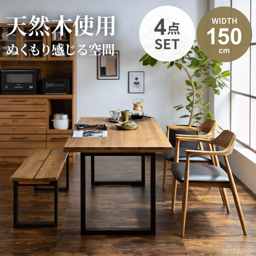 新生活 ダイニングセット 4人 ダイニングテーブルセット 4点セット 4人掛け 北欧 おしゃれ おすすめ ダイニングテーブル 幅150 cm 150cm 4人用 ベンチ チェアー 回転チェア 和風 和モダン オーク オーク無垢 無垢材 天然木 人気 天然木ダイニング