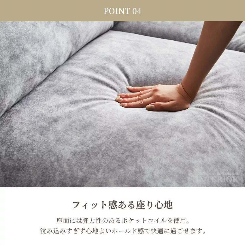ソファ座面部分にはポケットコイルを使用。
