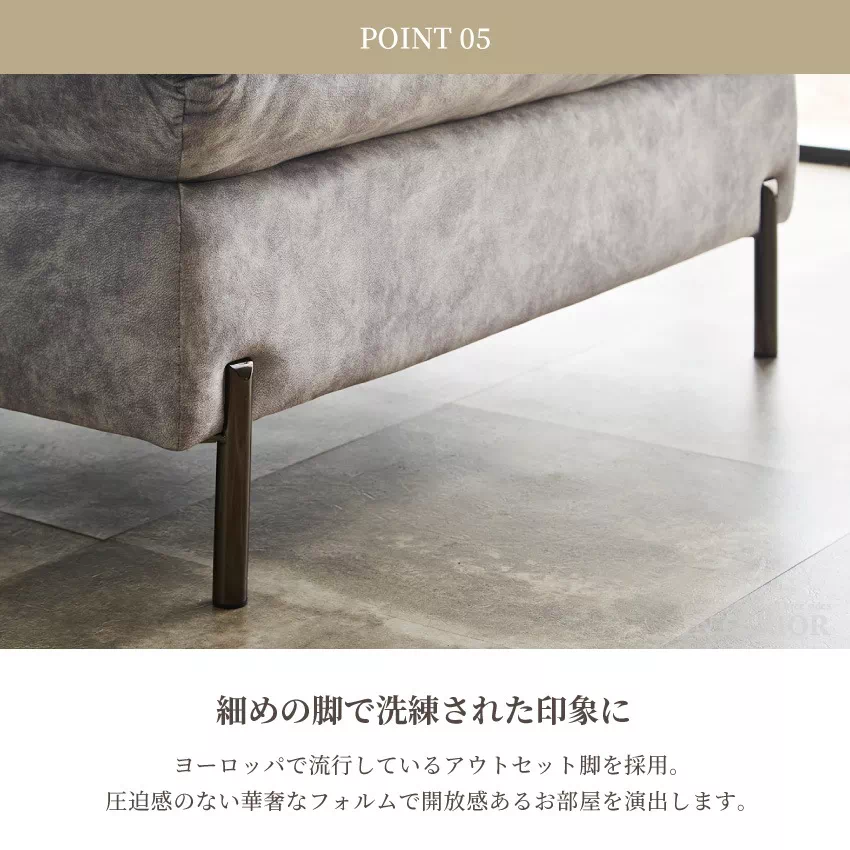 圧迫感を感じさせない細目の脚で開放感あるお部屋に仕上げます。
