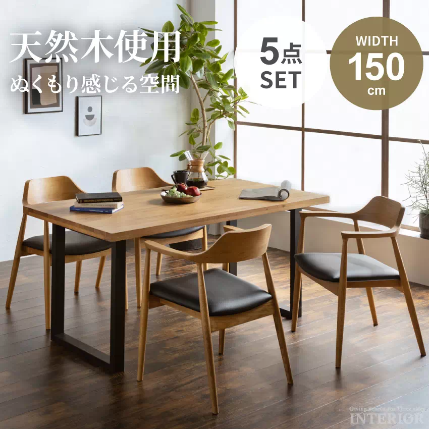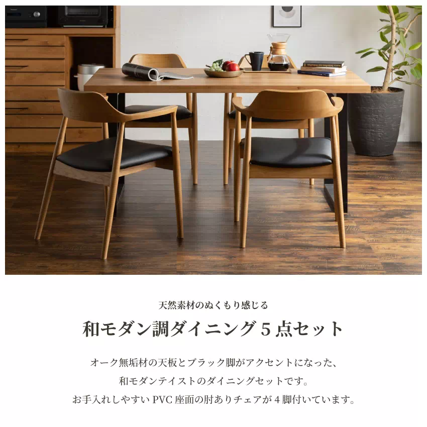 ダイニング テーブル セット チェア 4人掛け 4人 5点セット イス おしゃれ おすすめ 北欧 幅150cm 回転チェア 和風 和モダン オーク オーク無垢 無垢材 天然木 新生活