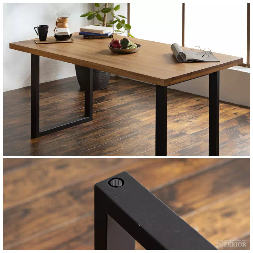 | 天然オーク無垢材の天板とブラック脚がアクセントになった、和モダンテイストのダイニングセット。お部屋を選ばないシンプルなデザインで、永く愛用していただけます。テーブルは150×80cmで、4人で使うにはちょうどいいサイズ!チェア座面はPVC素材でお手入れも簡単です。 |