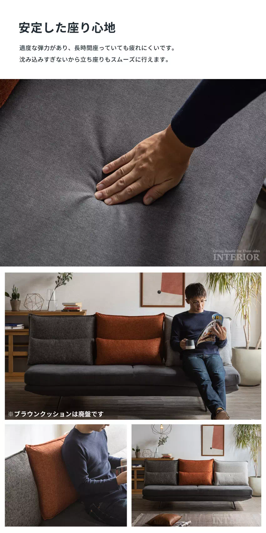 ・くつろぎ方にこだわった3Pソファ