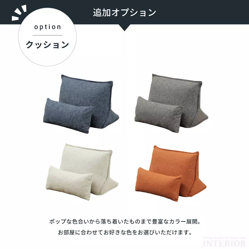 くつろぎの空間をより快適にできるクッションは、眠りたいときの枕にしたり、膝に置いたり、背もたれとして使用することもできます。