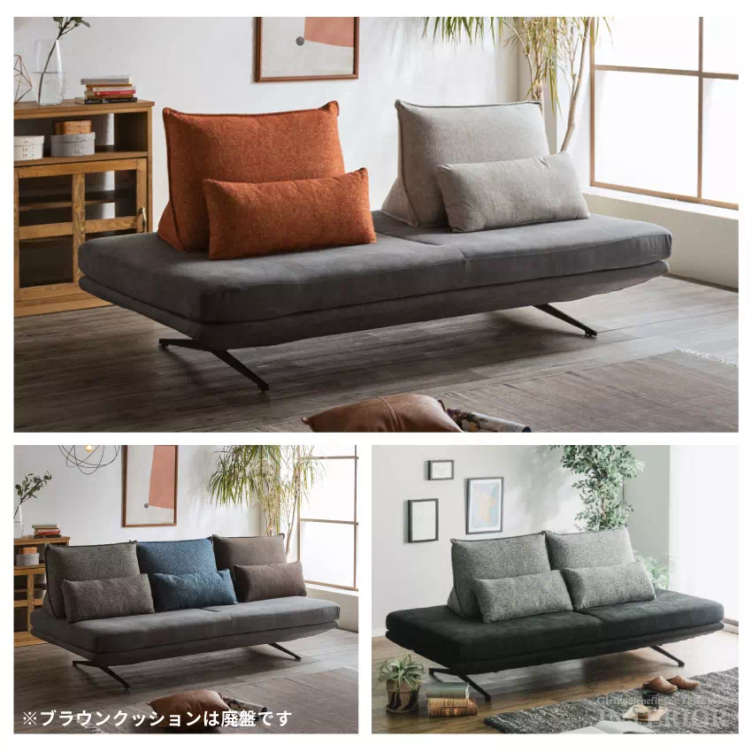 | 背もたれのクッションを4色から選べるおしゃれな3Pソファです。背もたれのクッションの位置を自在に変えて、様々な生活スタイルに合わせてご使用いただけます。肘掛がないため座面が広く使え、寝転んだり、足をあげたまま、くつろぐことができます。座ることも眠ることもできるソファベッドとしてご使用いただけるWAY仕様です。脚高が約14cmあるので、留守中もお掃除ロボットを使えます。 |