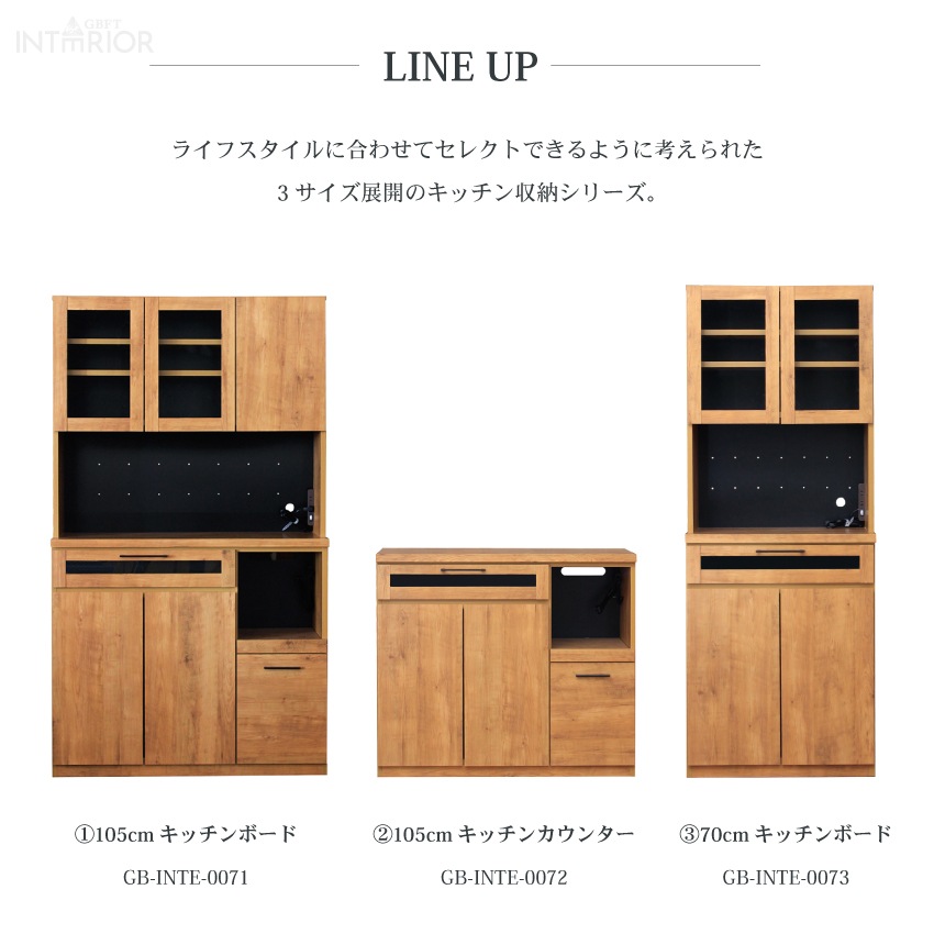 キッチンボード 幅70cm 食器棚 スリム 半完成品 日本製 キッチン収納棚 ブラウン オープンボード ヴィンテージ インダストリアル 西海岸 おしゃれ 70 キッチンキャビネット レンジ台 レンジボード 引き出し コンセント付き 木製 大川家具 新生活 GB-INTE-0073