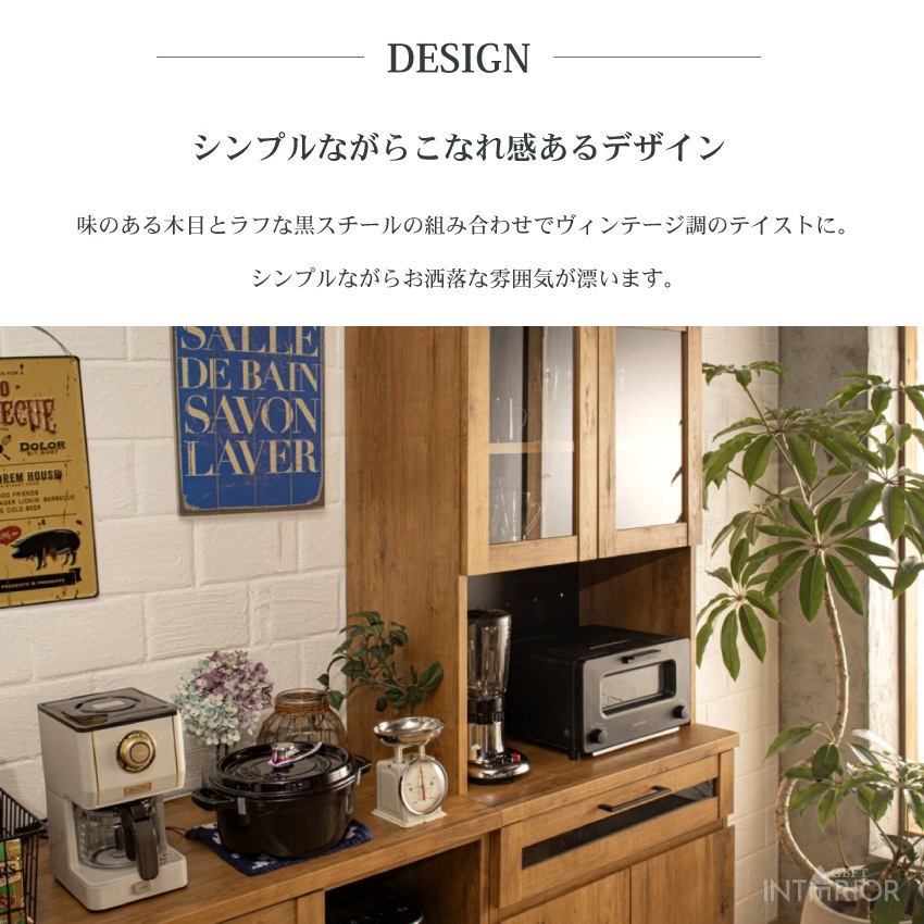キッチンボード 食器棚 幅105cm 高さ180cm 奥行き46cm おしゃれ おすすめ 半完成品 日本製 ナチュラル オープンボード カップボード モダン スタイリッシュ ヴィンテージ 収納 キッチンワゴン キッチン収納 キャビネット シンプル 大川家具 国産 新生活