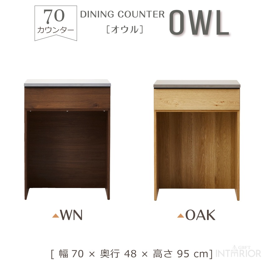ニッポネア キッチンカウンター 幅70cm オウル 食器棚 日本製 カウンターダスト おしゃれ 完成品 キッチンボード カウンターワゴン カウンター レンジボード ウォルナット オーク F☆☆☆☆ 収納 高級感 国産 大川家具 GB-INTE-0316