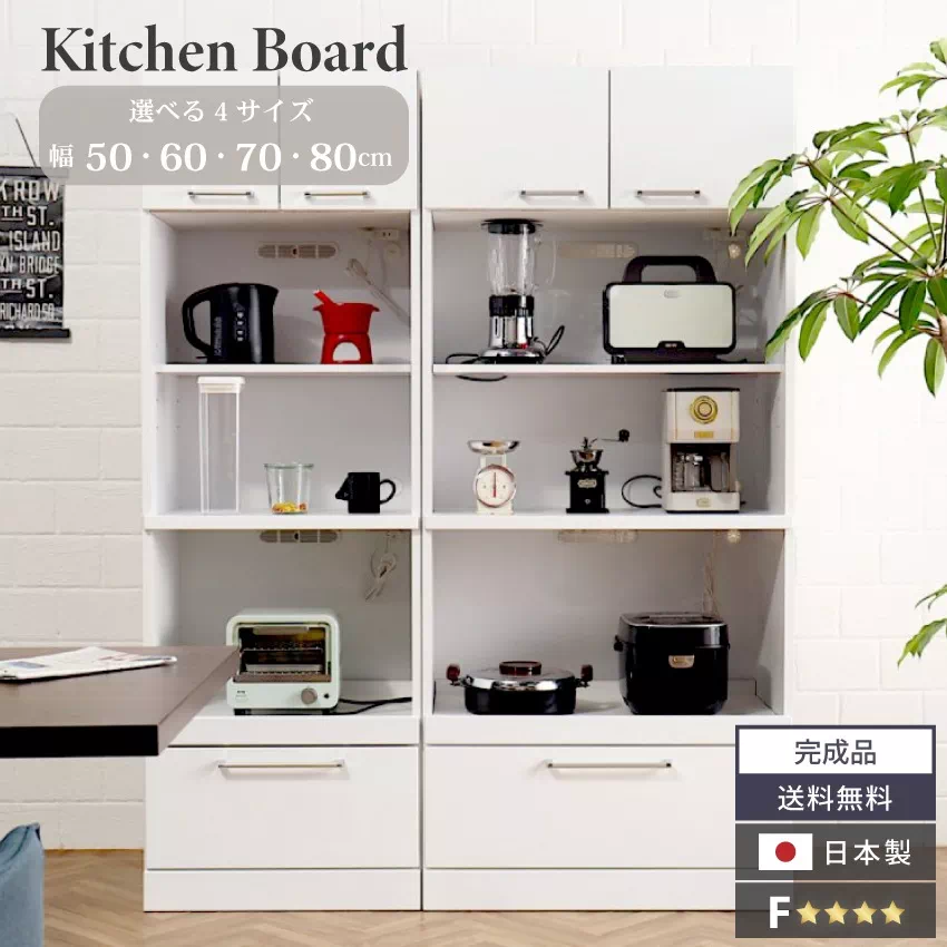キッチンボード 50幅 60幅 70幅 80幅 おしゃれ ホワイト 白 ハイタイプ 奥行き44.5cm レンジボード レンジ台 食器棚 キッチン棚 キッチン収納 収納 収納棚 電子レンジ 炊飯器