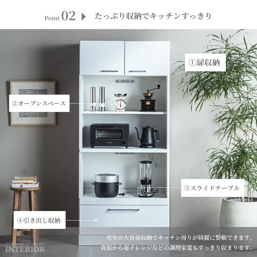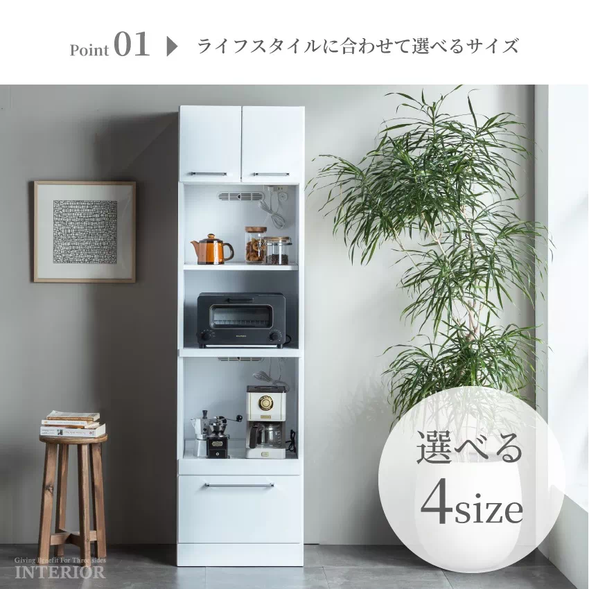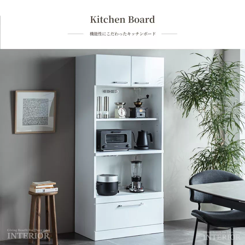 キッチンボード 50幅 60幅 70幅 80幅 おしゃれ ホワイト 白 ハイタイプ 奥行き44.5cm レンジボード レンジ台 食器棚 キッチン棚 キッチン収納 収納 収納棚 電子レンジ 炊飯器 GB-INTE-0496-v
