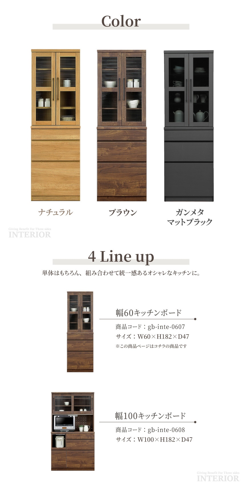 キッチンボード 幅60cm 奥行き47cm 食器棚 おしゃれ おすすめ 日本製 国産家具 収納 ナチュラル ブラウン 一人暮らし オープンボード モダン スタイリッシュ キャビネット クロスガラス シンプル 大川家具 完成品 新生活 GB-INTE-0607