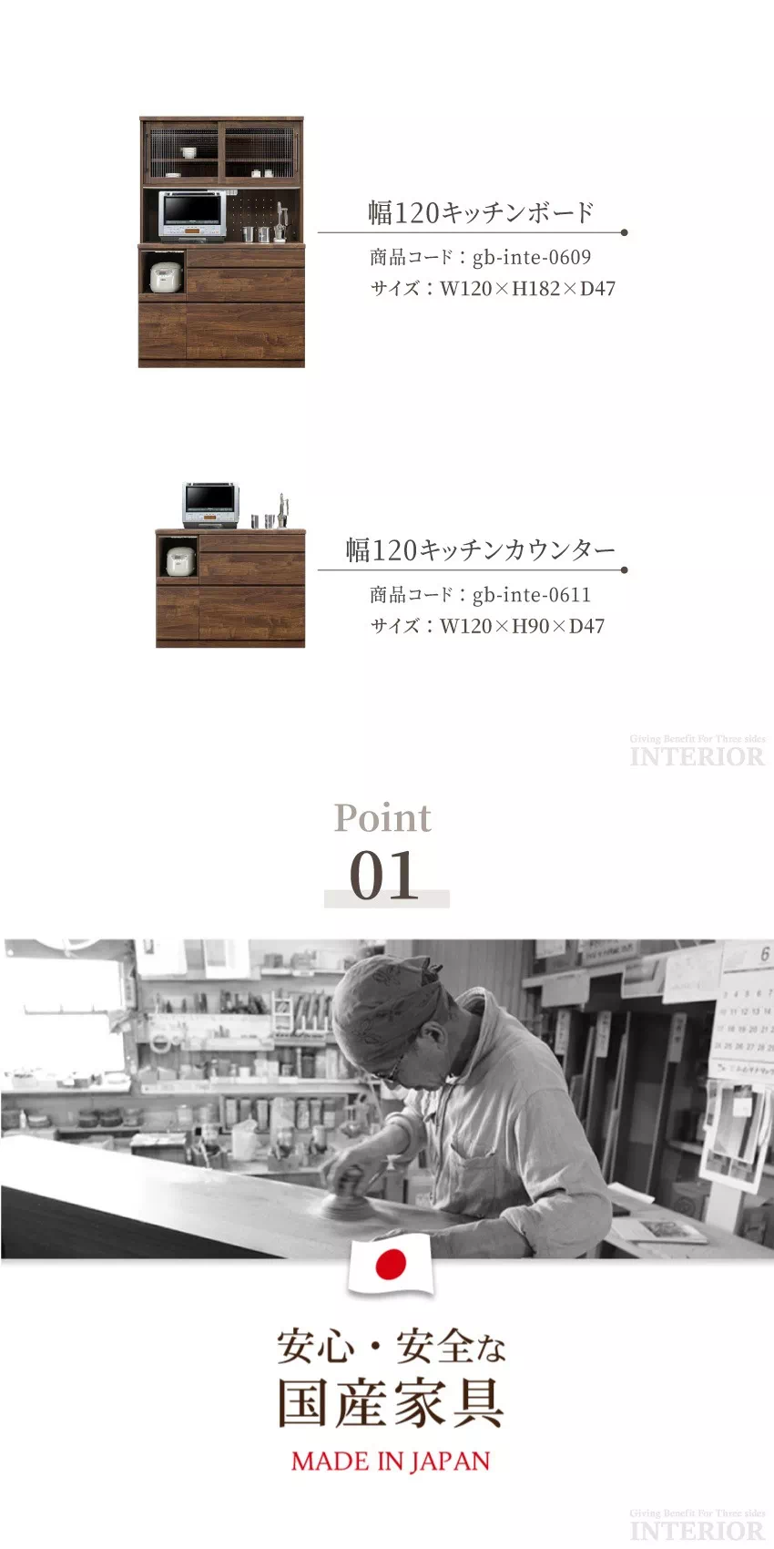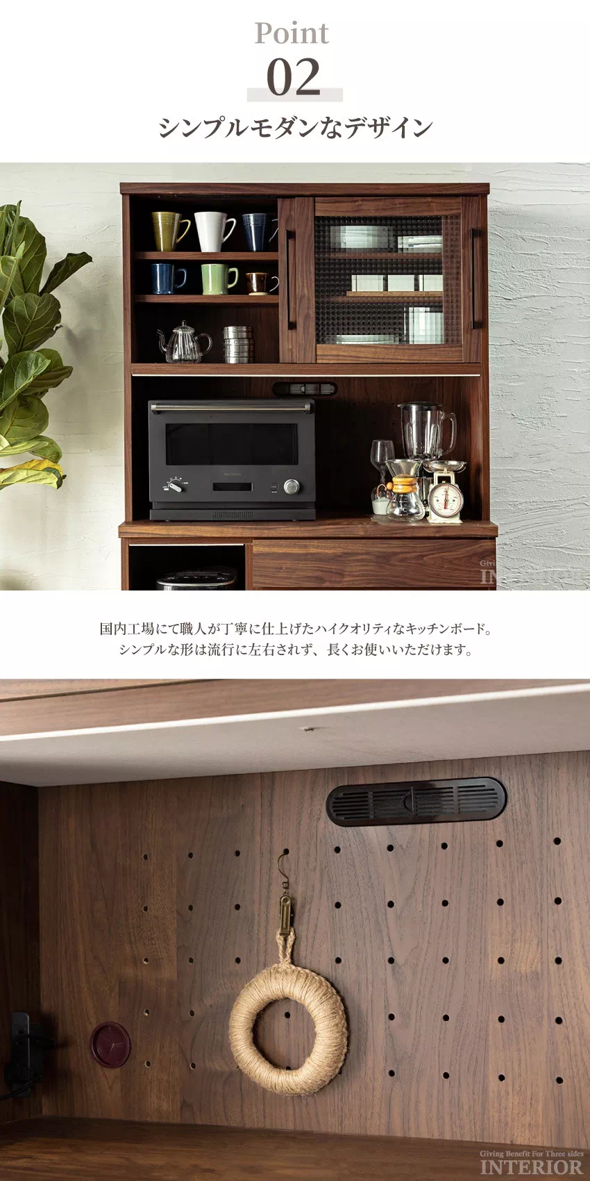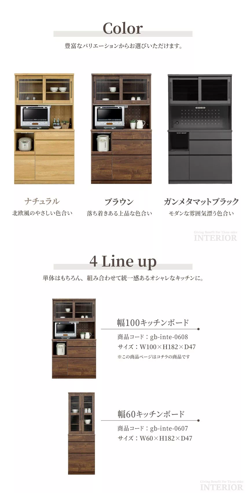 | お部屋に馴染みやすいシンプルなデザインに、大容量収納を備えたキッチンボード。引き出しや戸棚など、キッチン周りの小物をたっぷり収納出来ます。豊富なラインナップからお好きなサイズをお選びいただけます。安心安全な国産品!安心してご使用ください。湿気やニオイを抑えるエコ素材「モイス」をOP部分の上部に使用しているのでスチームオーブンレンジでも問題なくご使用頂けます。(※ガンメタマットブラックはモイスがついておりません。) |