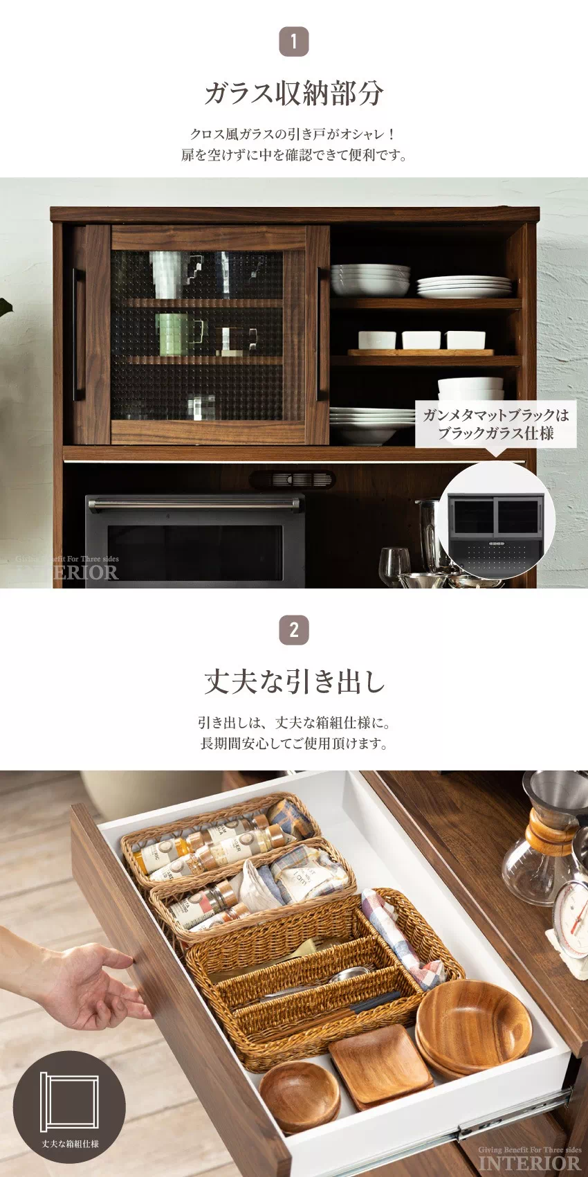 キッチンボード 幅100cm 食器棚 おしゃれ 完成品 オープンボード カップボード 国産 おすすめ 日本製 ナチュラル ブラウン ガンメタマットブラック モダン スタイリッシュ 収納 キッチンワゴン キッチン収納 キッチン キャビネット クロスガラス シンプル 大川家具 新生活 GB-INTE-0608