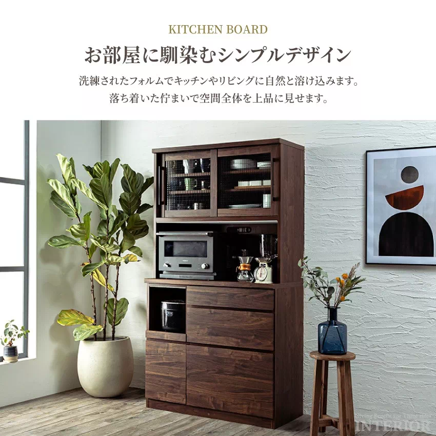 キッチンボード 幅100cm 食器棚 おしゃれ 完成品 オープンボード カップボード 国産 おすすめ 日本製 ナチュラル ブラウン ガンメタマットブラック モダン スタイリッシュ 収納 キッチンワゴン キッチン収納 キッチン キャビネット クロスガラス シンプル 大川家具 新生活