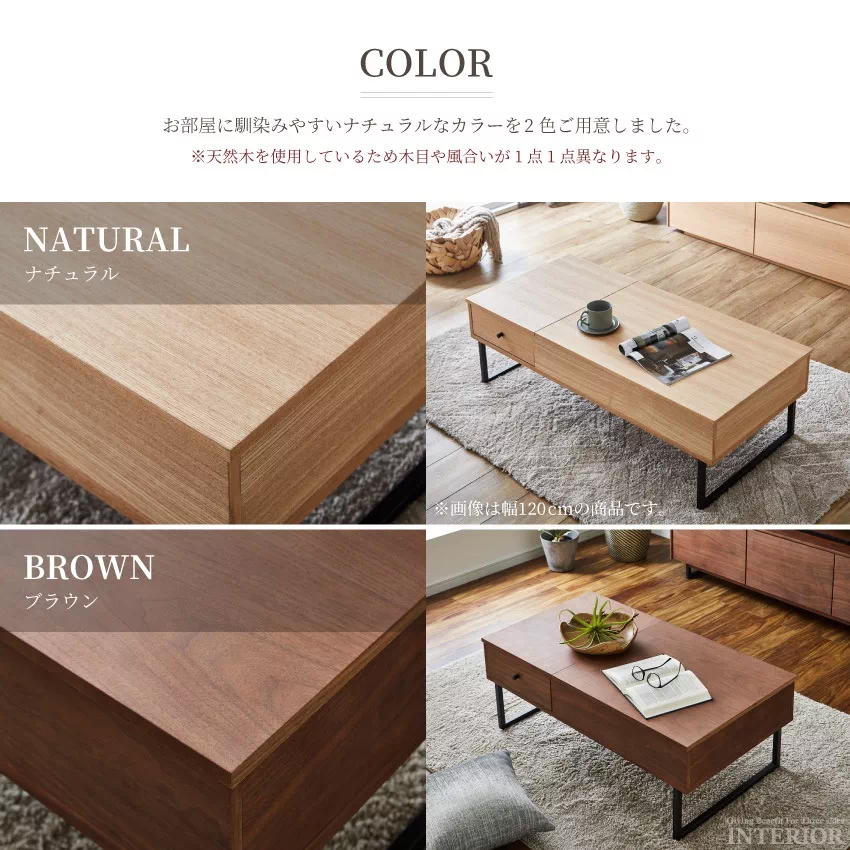 新生活 テーブル 昇降テーブル 100 幅100 センターテーブル リビングテーブル リフトテーブル リビング ウォルナット タモ 突板 収納 引き出し ローテーブル ダイニングテーブル デスク ブラウン ナチュラル 突板 天然木 昇降 100×55 高級 テレワーク