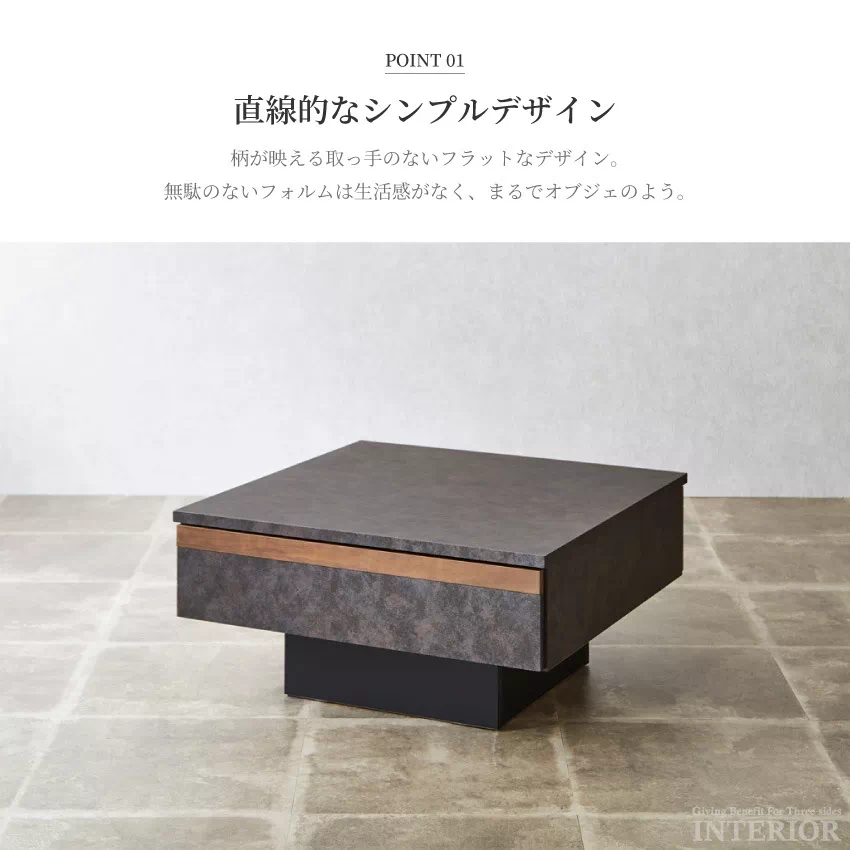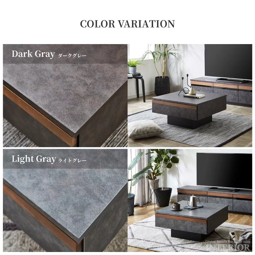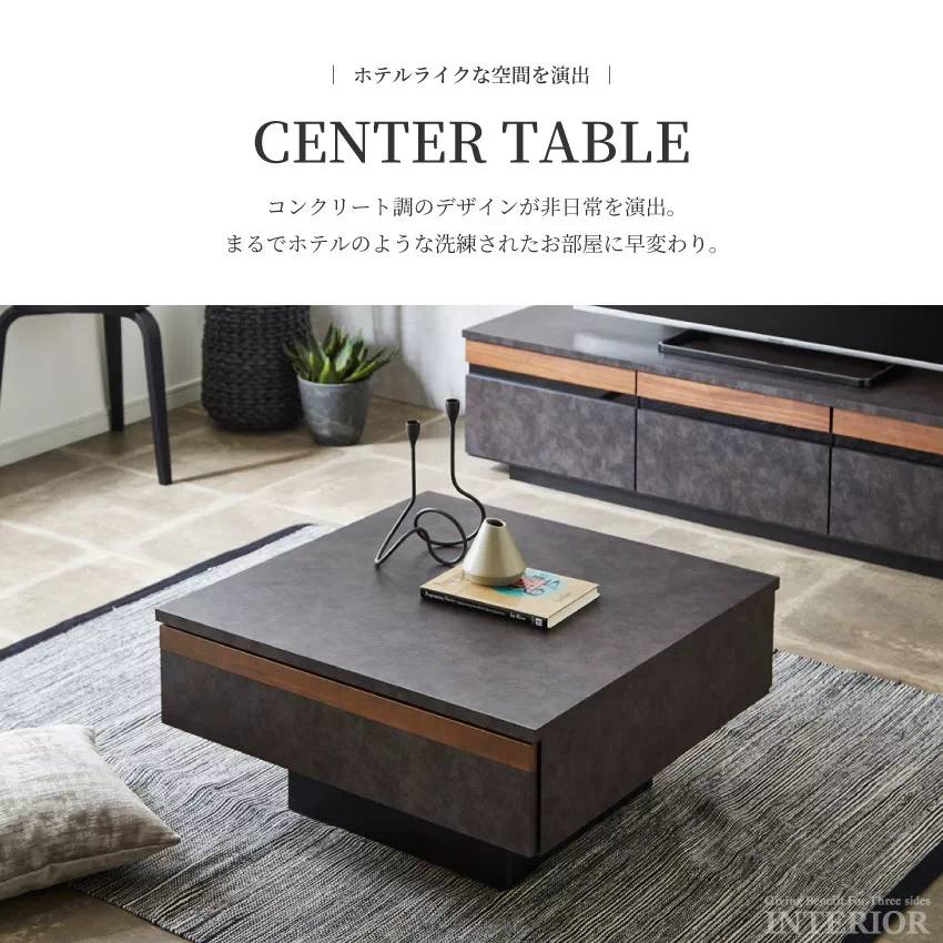 センターテーブル 国産 75角 おしゃれ ウォールナット ダークグレー ライトグレー 高さ36cm ローテーブル リビングテーブル モダン シンプル コンクリート調 収納付き 収納付きテーブル 無垢材 木目 引き出し 収納 日本製 75×75 正方形 新生活 GB-INTE-0944