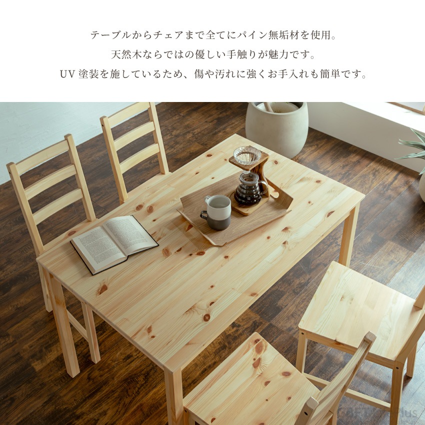Pure Luxe ダイニングセット 4人 ダイニングテーブルセット 5点セット 4人掛け 北欧 おしゃれ 幅120cm ナチュラル ダイニング チェア リビング 椅子 イス 天然木 木製 パイン材 選べる3カラー シンプル パイン無垢材 UV塗装