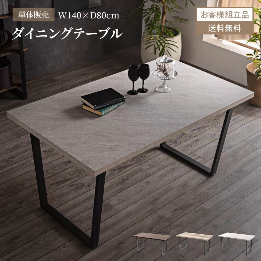 ダイニングテーブル 140 テーブル 単品 140×80cm おしゃれ ダイニング W140 幅140 奥行80 リビング 木目調 コンクリート調 グレー ナチュラル ブラウン シンプル モダン スチール デスク 机 コの字脚 長方形 4人掛け 4人用 食卓 新生活 北欧