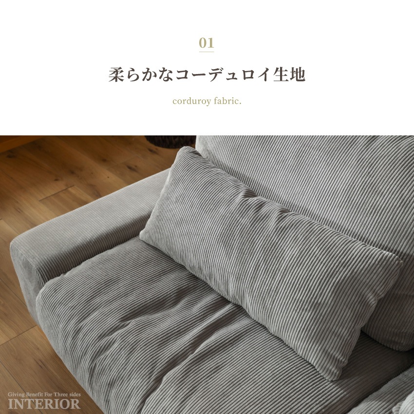 ソファ 3人掛け 1.5人掛け シェーズ 188cm 95cm 89cm コーデュロイ 高級 おすすめ 背もたれ可動式 リビング 北欧 人気 おしゃれ 奥行き調整可能 広い座面 ハイバック モダングランパ