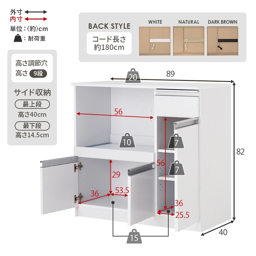 レンジ台 レンジ対応 収納 キッチンラック レンジボード おしゃれ キッチン 収納棚 北欧 キッチン キッチンボード 89幅 キッチン収納 ラック キッチンカウンター 頑丈 スライド棚 収納 木目調 引き出し オープン収納 扉収納 可動棚 コンセント 82cm