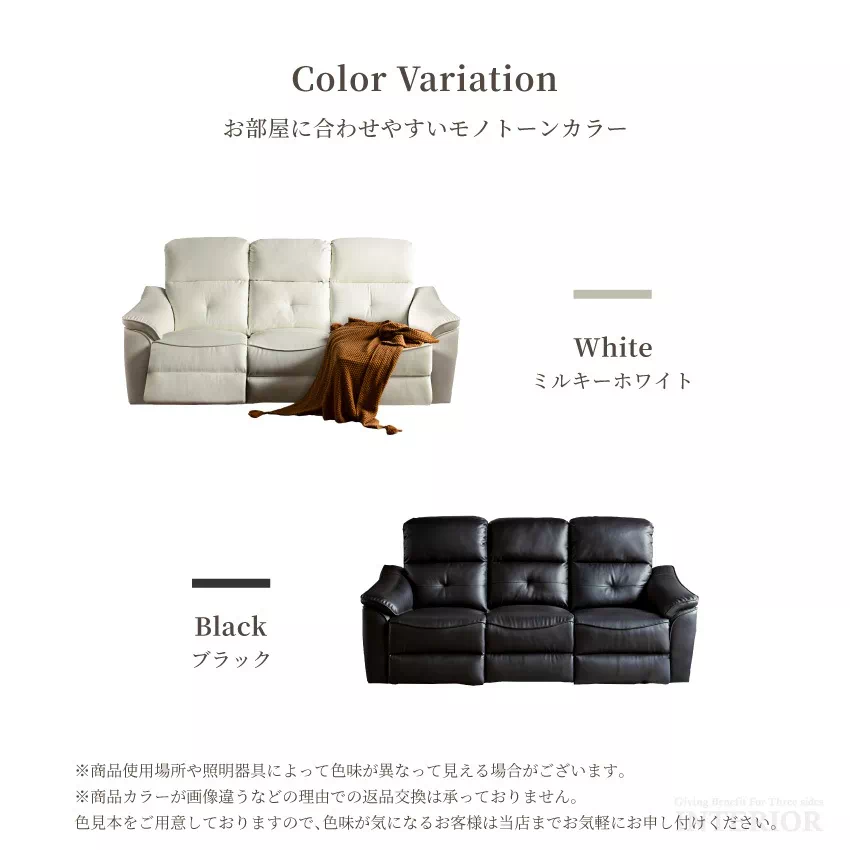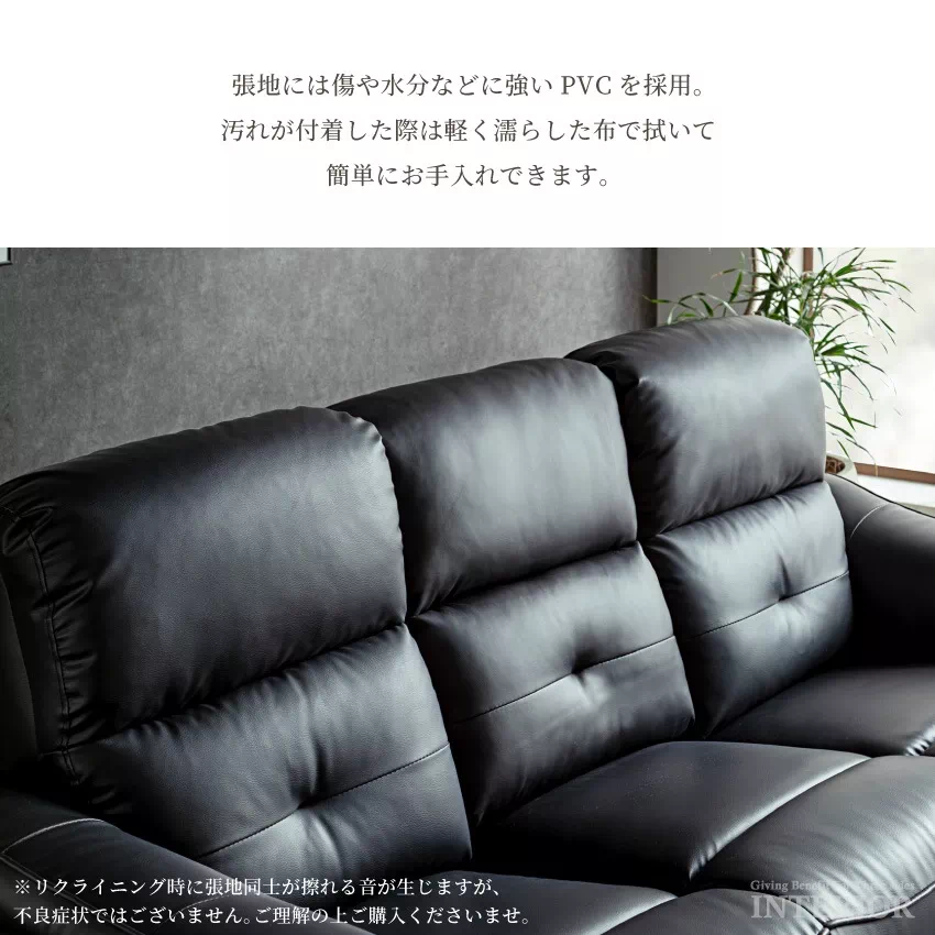 | ※ご注意ください。 ソファのリクライニング時に立ち上がろうとしたり、ソファの上でお子様が飛び跳ねることの無いようにお願いします。ソファのぐらつき、転倒につながる恐れが御座います。 当商品リクライニングソファーの為、リクライニング時等に座面と背もたれに隙間が生じることが御座います。こちらは商品不良では御座いません。リクライニング構造上、通常の仕様で御座います。 また合皮の為、リクライニング時に生地が擦れる音がします。ご理解いただきご購入の程よろしくお願い申し上げます。 ・色見本、生地見本、板見本等ご要望の場合は、当店までご連絡くださいませ。(商品によってはご準備できないものも御座います。ご了承の程よろしくお願いします。) ・商品の使用は随時改善されており、入荷時期により多少のデザイン変更が行われている場合がございます。 リピート注文等で全く同様の形をご希望される方はくれぐれもご注意下さい。 ・当店は、基本的にお客様都合によります、返品・交換はお受けしておりません。 イメージ違い・注文間違いの場合も含まれますので、ご注文前に今一度ご確認をお願い申し上げます。 詳細は、会社概要の返品につきましてをご確認頂きます様よろしくお願いします。 ・不要家具のお引取り、処分を行なっております。(一部対象外地域あり)詳しくは、下記URLよりご確認下さい。 http://gbft-interior.com/view/page/furniture_collection |