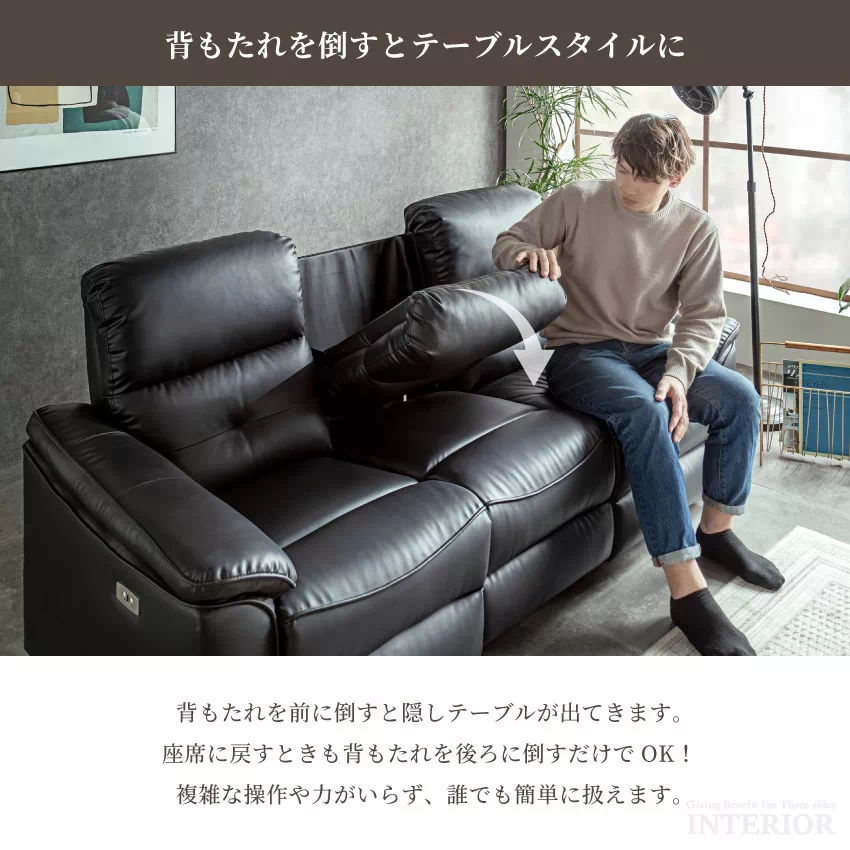 ソファー 3人掛け 電動リクライニング 北欧 おしゃれ おすすめ ホワイト ブラック PVC 2人掛け 電動 ハイバック 電動リクライニングソファー ソファ コンパクトテーブル付き リビングソファー 電動ソファー USB 合皮 センターテーブル 白 黒 GB-INTE-1271