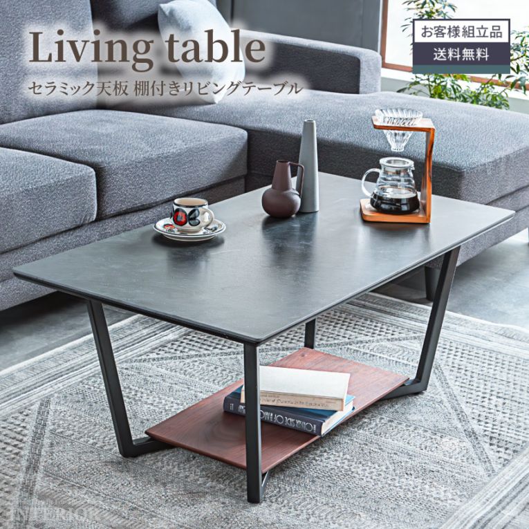 テーブル ローテーブル センターテーブル 110cm 幅110 おしゃれ セラミック ブウォールナット リビングテーブル モダン シンプル 棚 セラミック天板 収納 スチール 高級感 リビング 一人暮らし