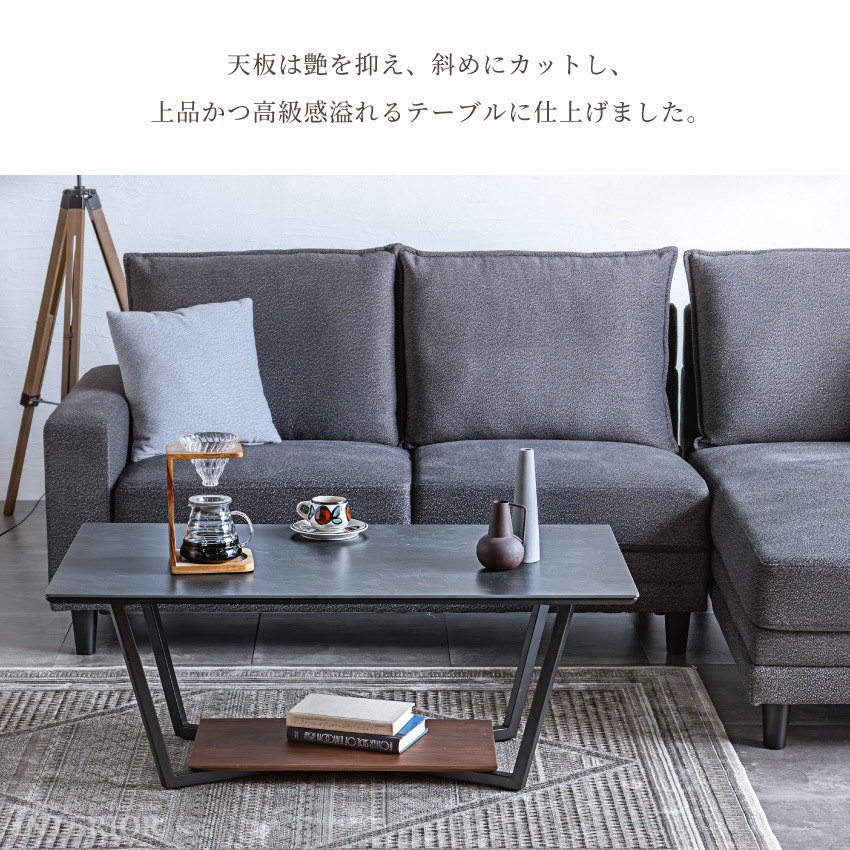 ローテーブル 国産 おしゃれ ブラック グレー 幅105cm 高さ34.5cm センターテーブル セラミック調 リビングテーブル モダン シンプル フルオープンレール 引き出し 収納 日本製 高級感 新生活