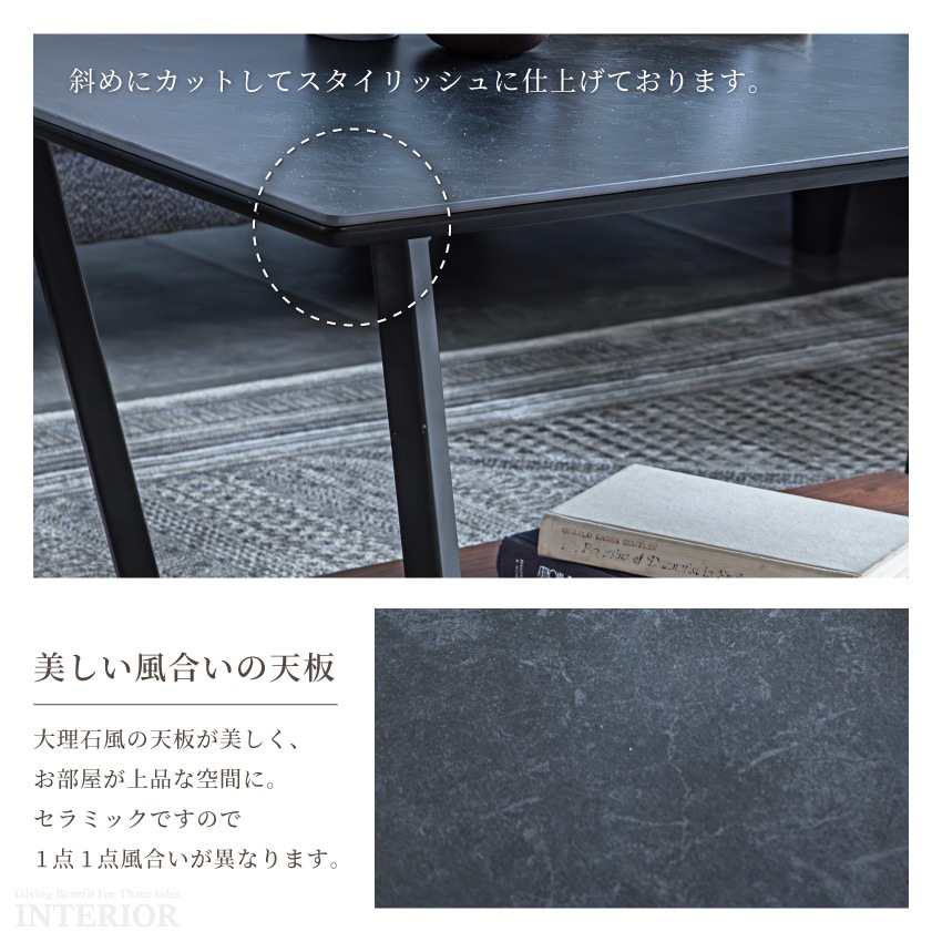 テーブル ローテーブル センターテーブル 110cm 幅110 おしゃれ セラミック ブウォールナット リビングテーブル モダン シンプル 棚 セラミック天板 収納 スチール 高級感 リビング 一人暮らし GB-INTE-1334