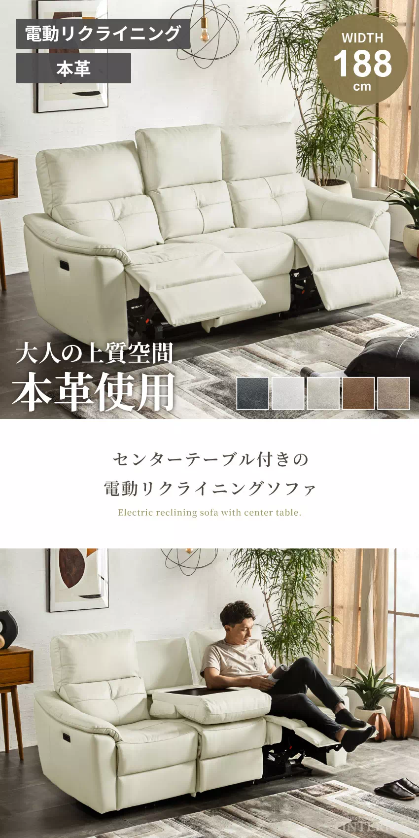 電動ソファ 3人掛け 北欧 幅188 188cm おしゃれ おすすめ 3人掛けソファー おしゃれソファー リビングソファー ソファ ソファー 電動 電動ソファー 本革 モダン 高級感 テーブル付き