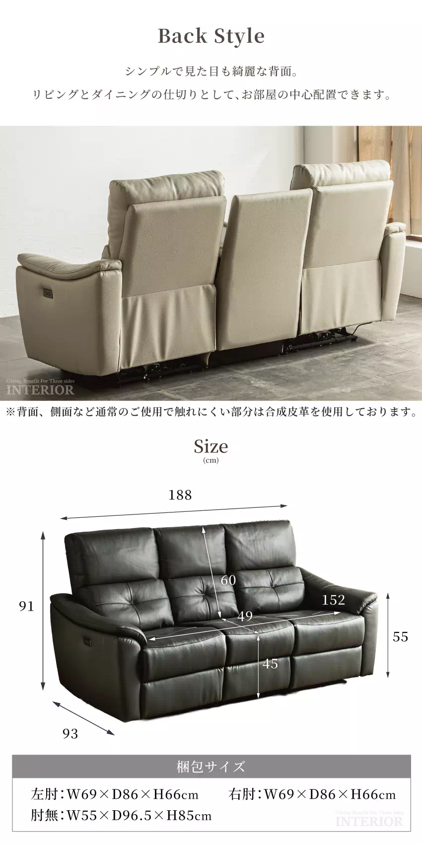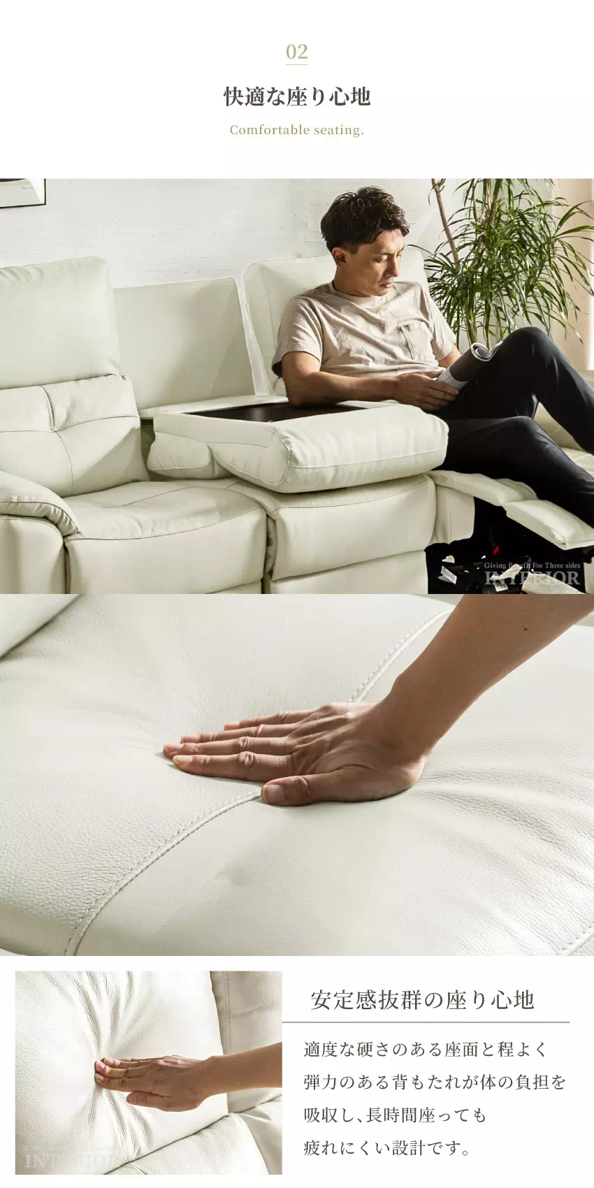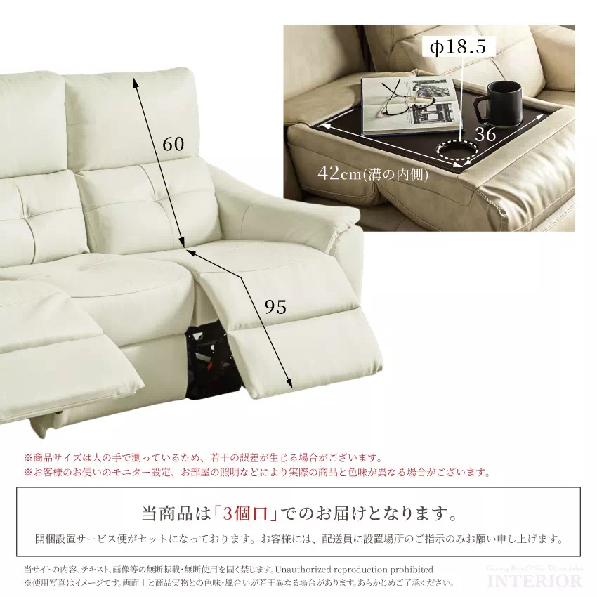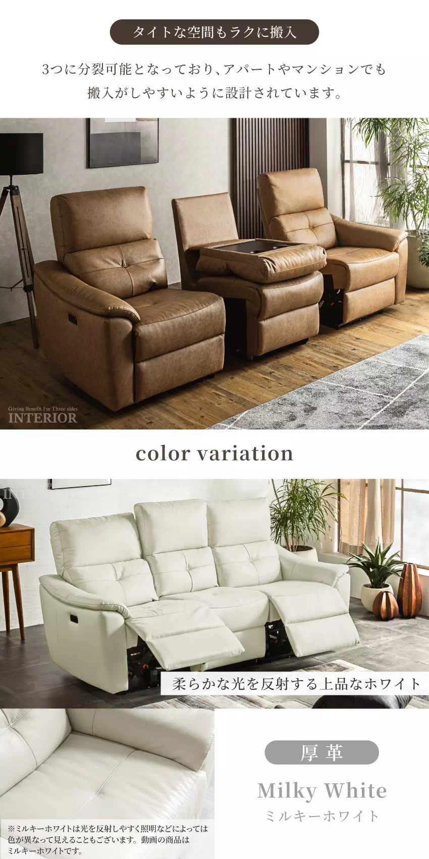 電動ソファ 3人掛け 北欧 おしゃれ 電動 リクライニング ソファ おすすめ 2分割 ホワイト ブラック 本革 革 革張り レザー レザー張り ヘッドレスト可動 ゆったり 高級 新生活