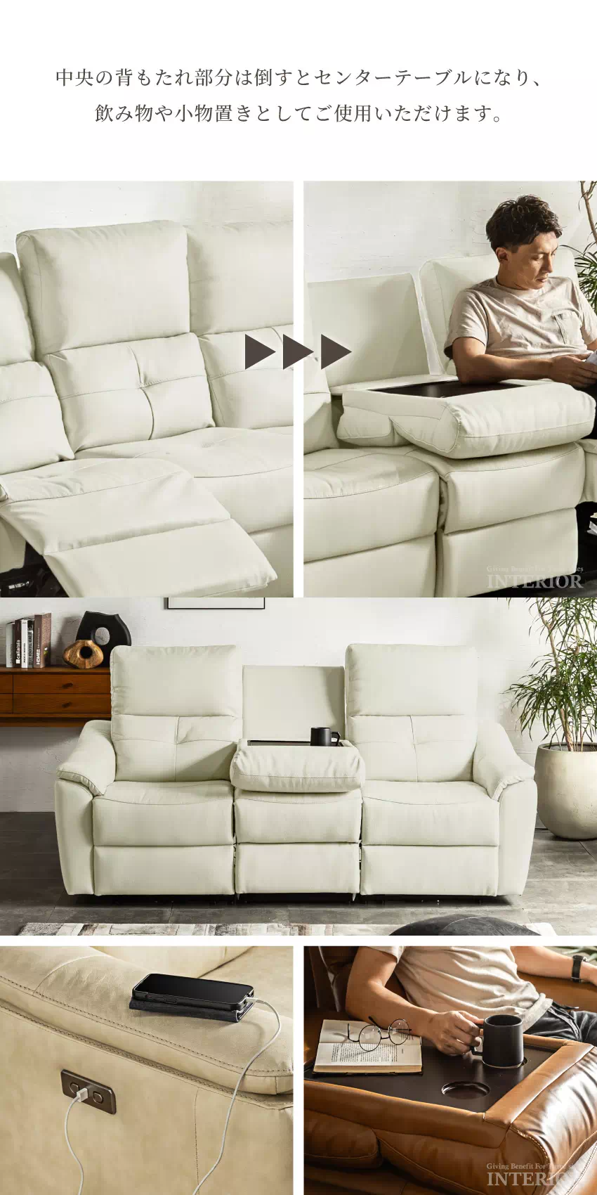 電動ソファ 3人掛け 幅188cm おしゃれ 電動リクライニングソファ 北欧 おすすめ リビング 本革 モダン 高級感 テーブル付き 三人掛け 3人用 三人用 新生活 GB-INTE-1355
