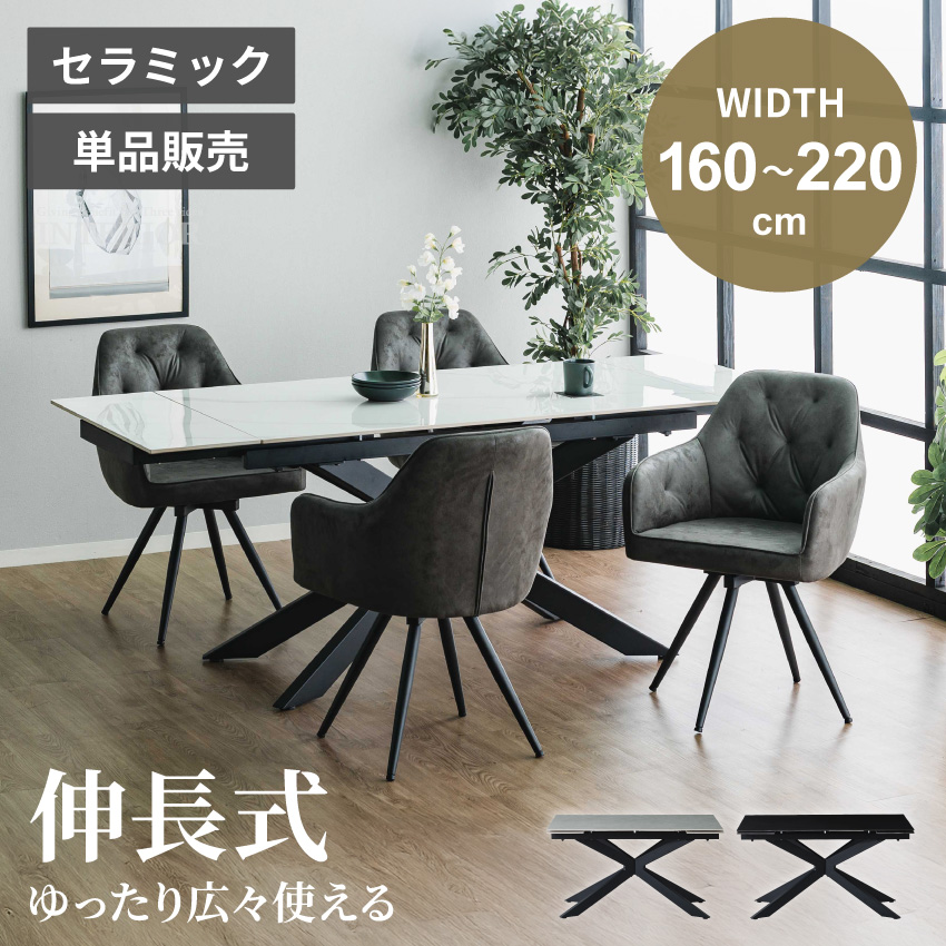 ダイニングテーブル テーブル 単品 伸縮 伸長式 おしゃれ 伸長 セラミック 食卓テーブル ホワイト グレー ブラック 伸長テーブル 4人用 6人用 160cm 220cm 北欧 モダン(テーブルのみ、チェア別売り)
