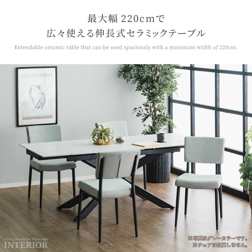 ダイニングテーブル テーブル 単品 伸縮 伸長式 おしゃれ 伸長 セラミック 食卓テーブル ホワイト グレー ブラック 伸長テーブル 4人用 6人用 160cm 220cm 北欧 モダン(テーブルのみ、チェア別売り) GB-INTE-1372