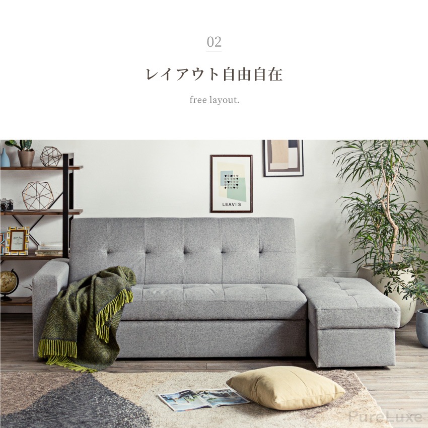 Pure Luxe カウチソファ 3人掛け おしゃれ 幅166cm