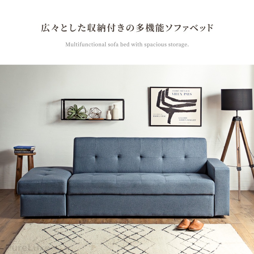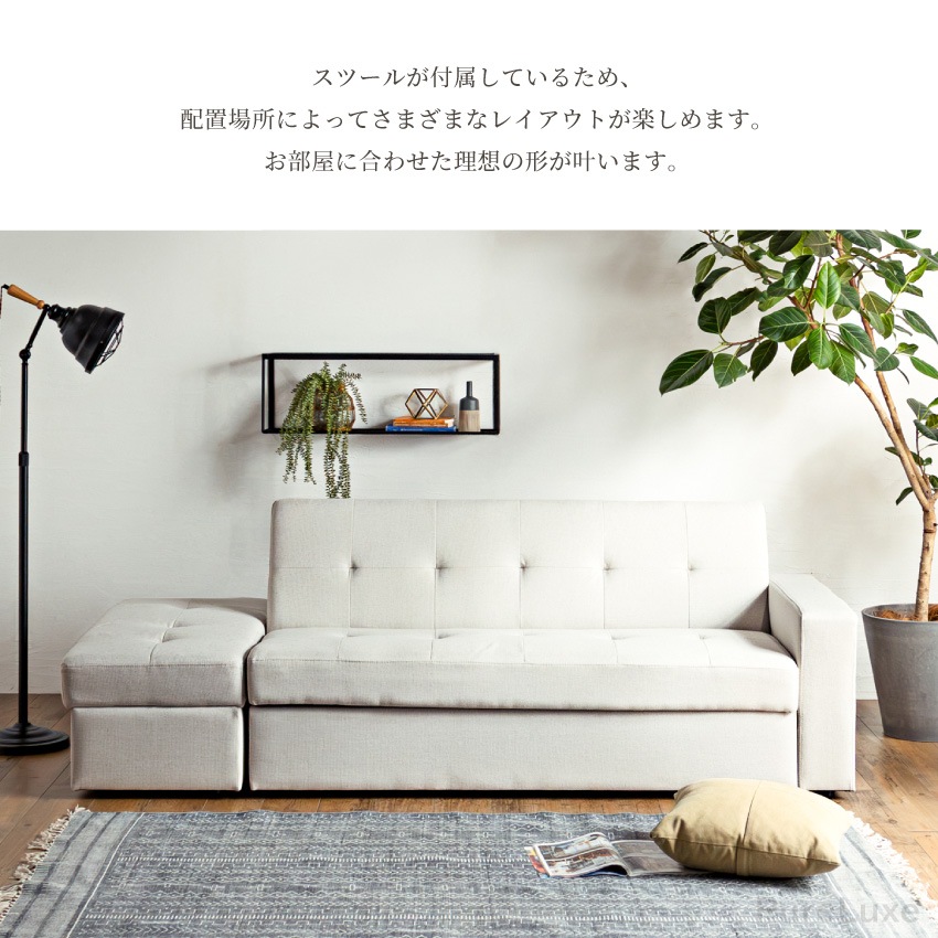 ソファーベッド おしゃれ おすすめ 収納 3人掛け 幅216cm シングルベッド 北欧 リビング 座面下収納 ファブリック 多機能 スツール カウチソファ 2WAY レイアウト自由 完成品 三人掛け 3人用