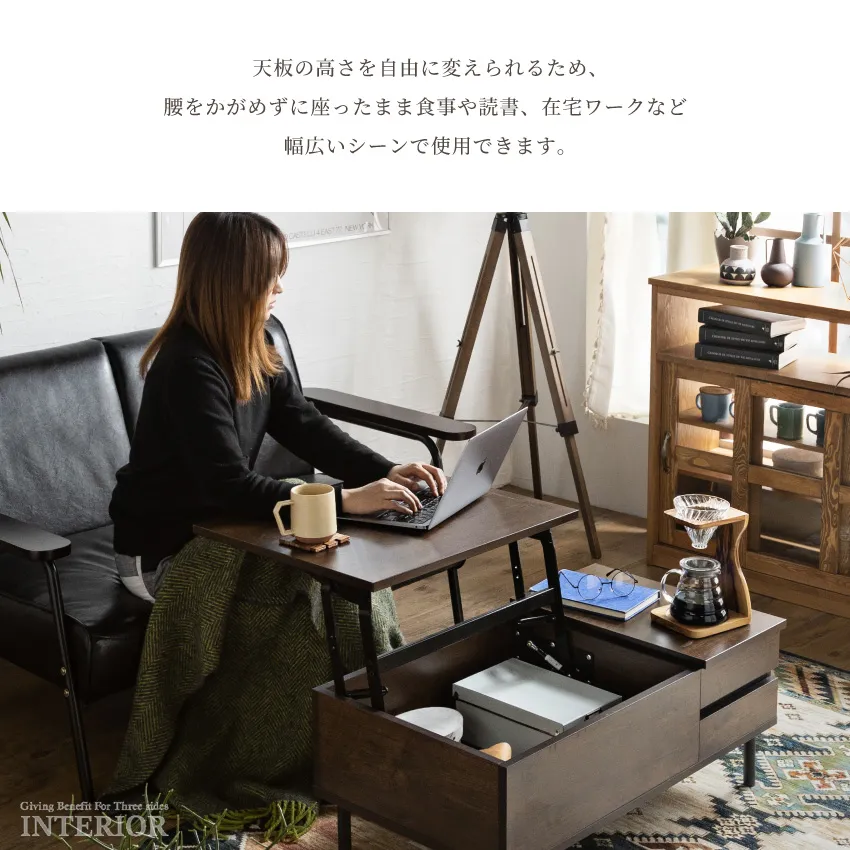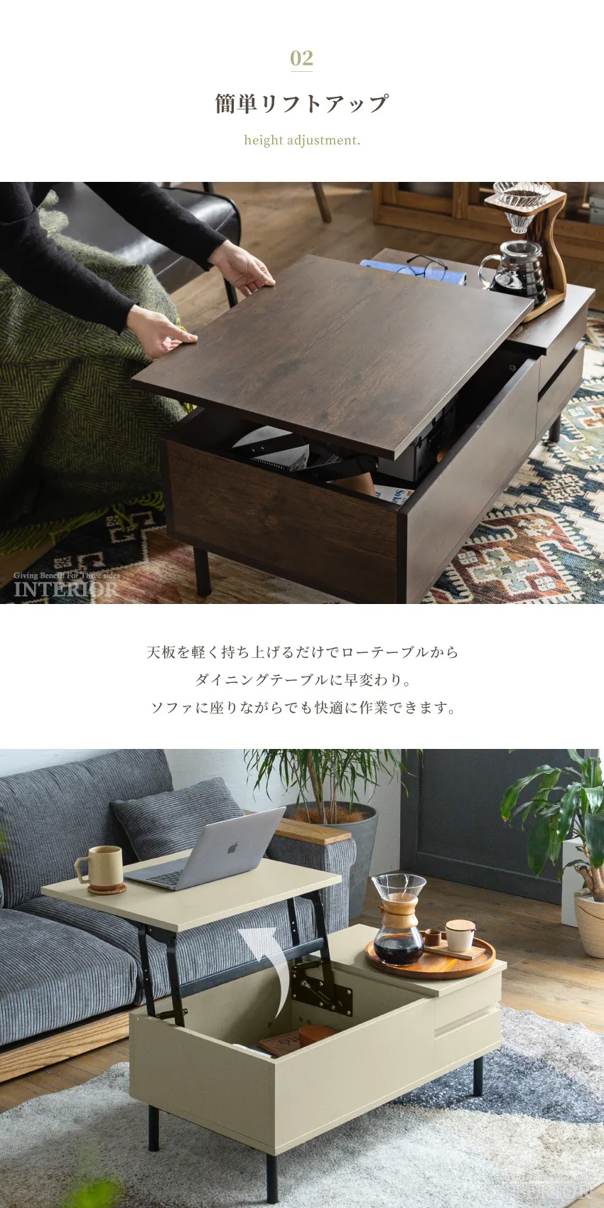 テーブル 昇降式 ローテーブル リフトアップテーブル センターテーブル 高さ調節 幅90 天板昇降 収納 おしゃれ 昇降テーブル コスメ リフトテーブル リビング 木目調 コンパクト 場所をとらない Pure Luxe