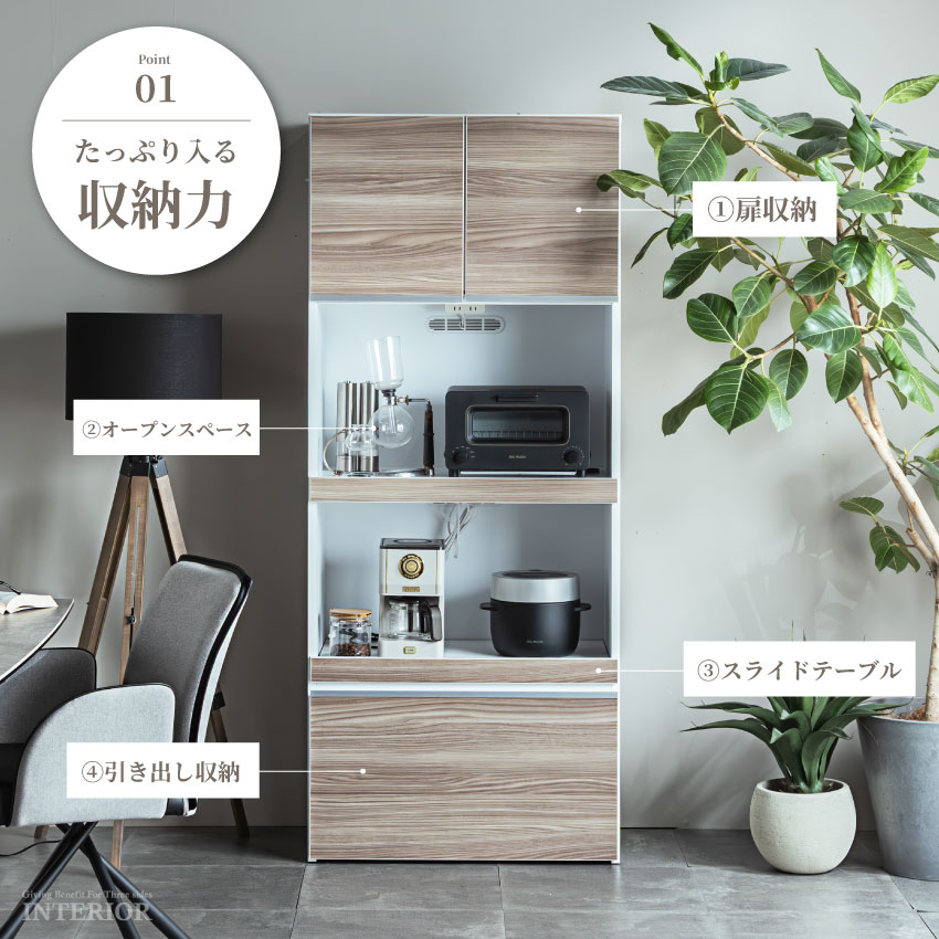 キッチンボード 幅50cm 幅60cm 幅75cm 幅100cm スリムタイプ ハイタイプ おしゃれ 奥行き43.2cm 木目調 レンジボード スライドテーブル モイス加工 コンセント付き レンジ台 食器棚 キッチン収納 ダイニングボード 収納棚 炊飯器 隙間収納 ちょうどいい 日本製 国産 GB-SKUP-0050