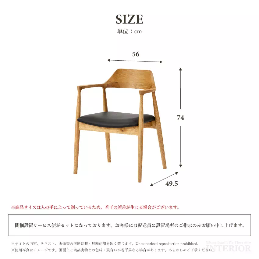 | フレームにはアッシュ無垢材を採用。天然木ならではのぬくもり感じるデザインが魅力です。座面にはお手入れしやすい合皮(PVC)を使用しています。背面のなだらかなカーブが体にやさしくフィットし、快適にお使いいただけます。 |
