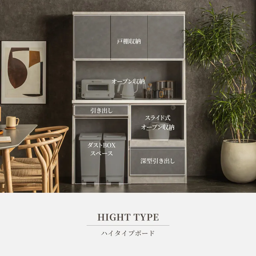 食器棚 ハイタイプ キッチンボード スリム120 90 モイス付 ダストBOXスペース付 国産 120幅 90幅 おしゃれ 120cm 90cm 収納 キッチン収納 日本製