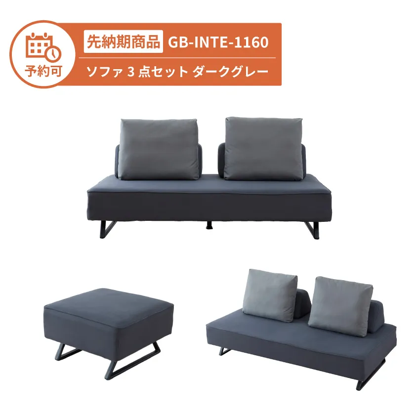 【予約】GB-INTE-1160 ソファ 3点セット ダークグレー