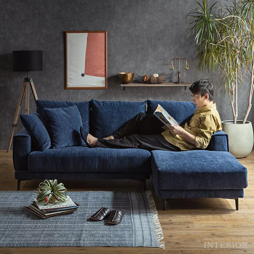 【予約】GB-INTE-0868 カウチソファ ブルー 座って左カウチ