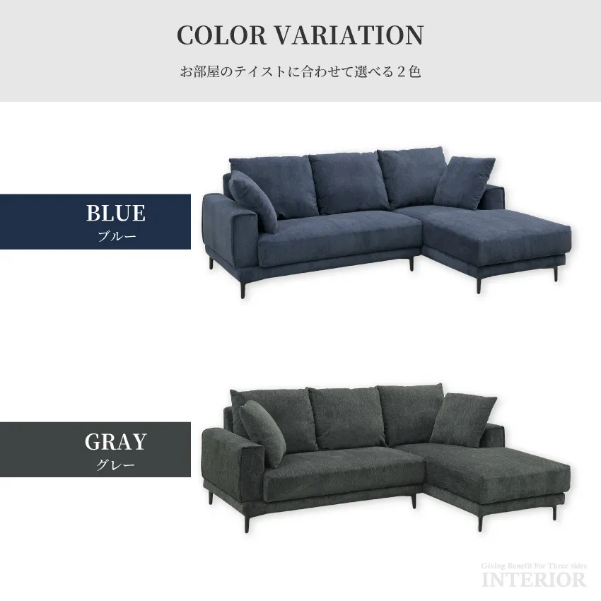 新生活 ソファー l字 カウチ コーナー ソファ ファブリック 北欧 おしゃれ 幅210 ファブリックソファー 布張り 3人掛け 4人掛け 布 カウチソファー ブルー コーナーソファー グレー ダークグレー L型 スチール脚 選べるカウチ 大きいサイズ 210