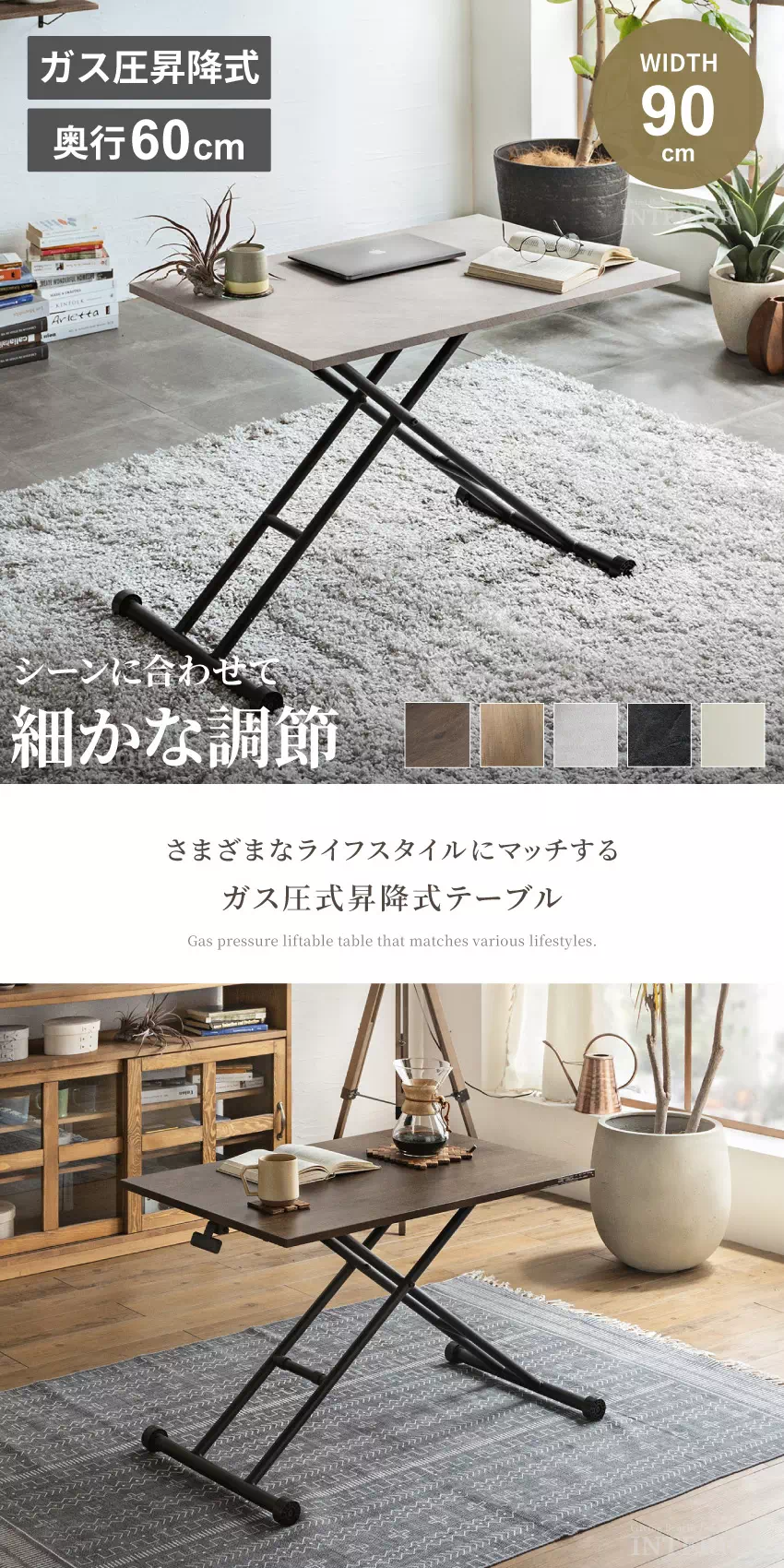 テーブル 昇降式 昇降テーブル ガス圧昇降式テーブル ダイニングテーブル 90×60cm ブラウン ナチュラル 大理石調 センターテーブル ローテーブル リビングテーブル リフトアップテーブル デスク 高さ調節 【送料無料/時間指定可】GB-INTE-0869 GB-INTE-0869
