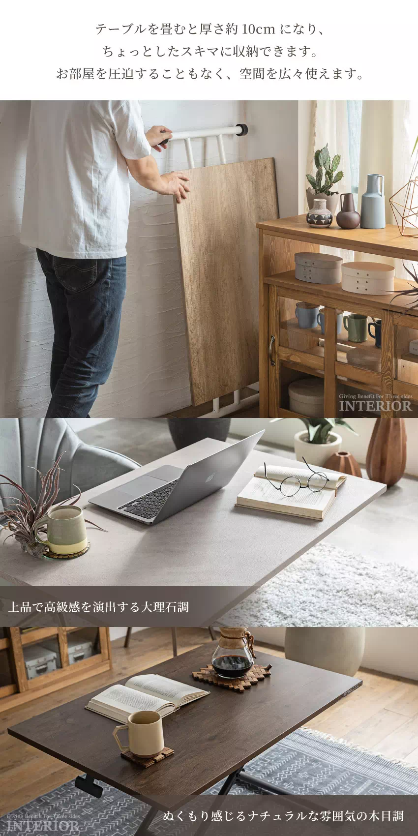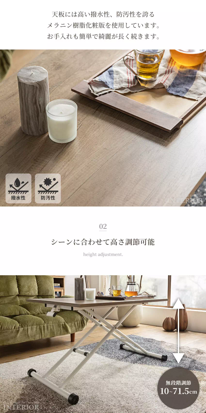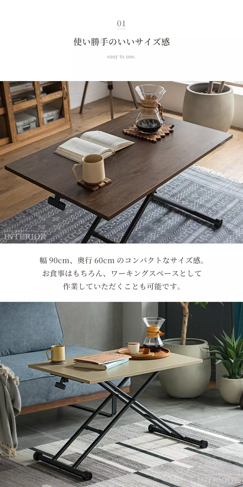 | ライフスタイルやシーンに合わせて高さを調節できるから様々な使い方ができます。移動もラクラクできて使う場所を選びません。マルチに何役もこなす便利なテーブルです。 |