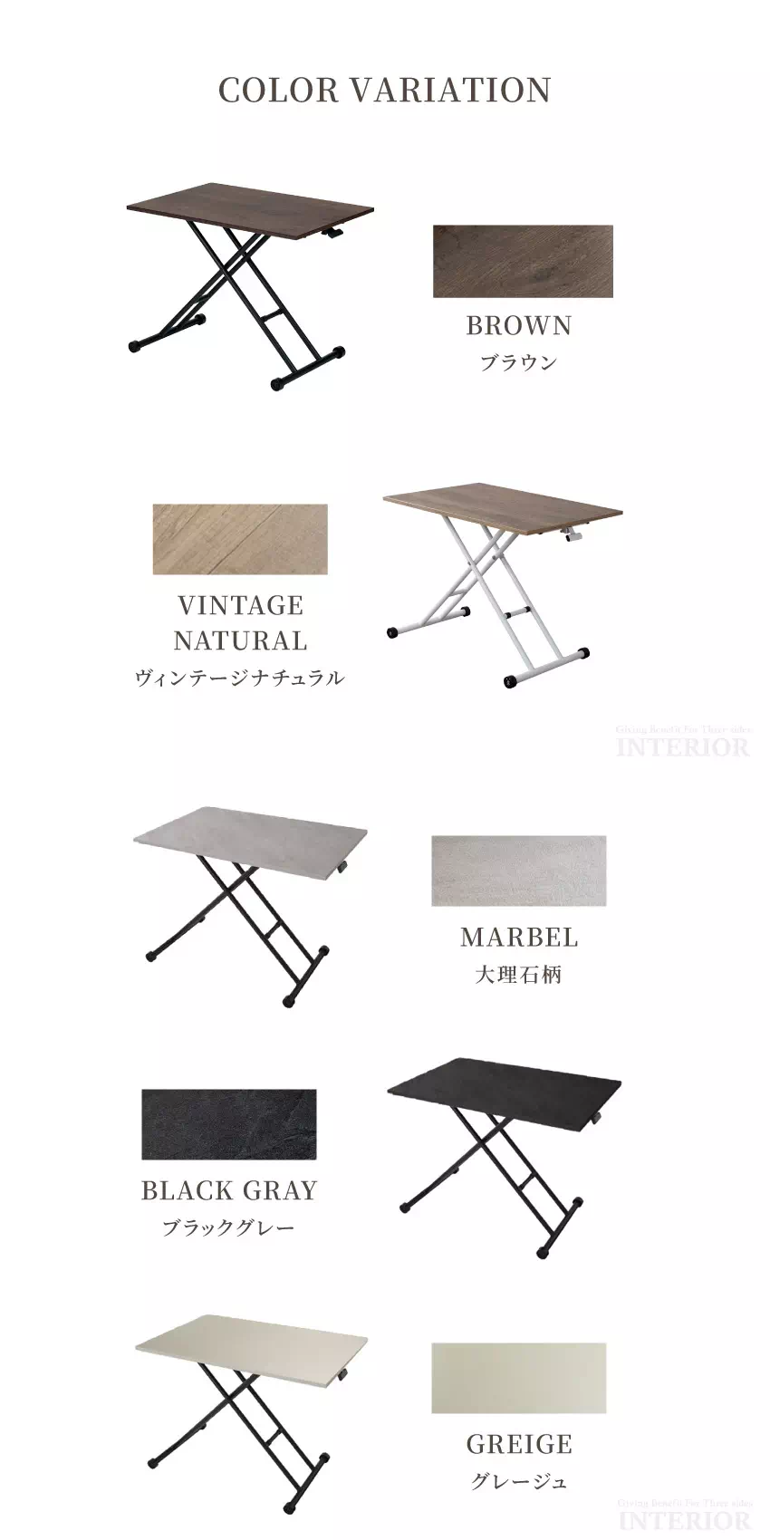 | ブラウン ・ ヴィンテージナチュラル ・ 大理石柄 ・ ブラックグレー ・ グレージュ ※ブラックグレーの梱包表記は「DGY」になります。 |